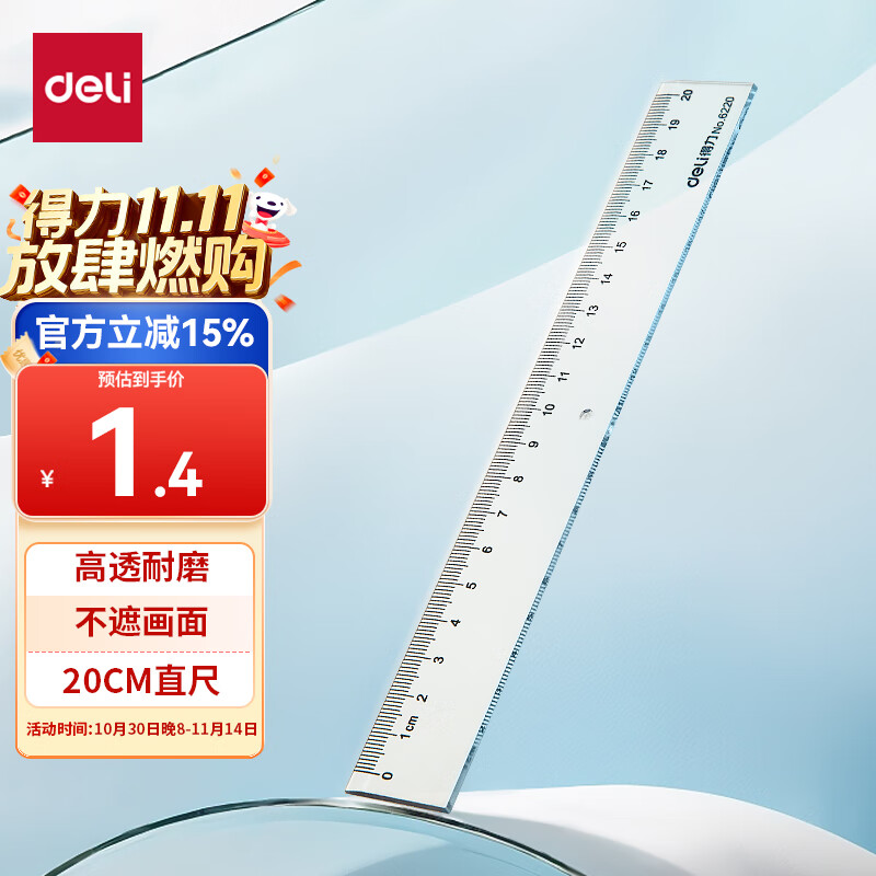 包邮 得力(deli)[超级爆款]20cm办公通用直尺 考研高考中考测量绘图尺子 办公用品 尺子